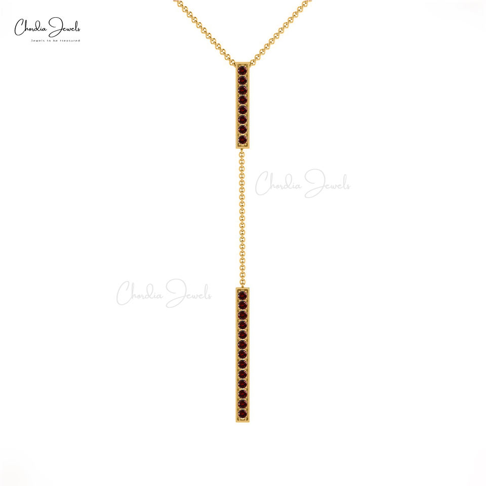 สร้อยคอห้อยรูปตัว Y ประดับพลอยโกเมนขนาด 2 มม. แบบฝังเพชร พร้อมสร้อยคอแท่งทองคำแท้ 14k ขายดี ราคาส่ง