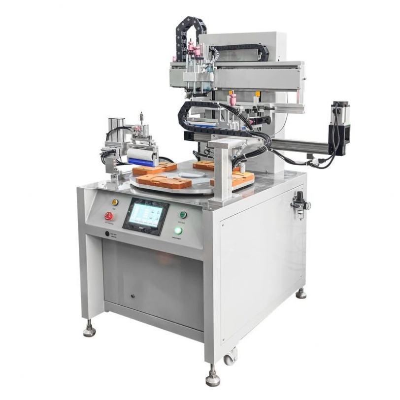 เครื่องพิมพ์สกรีนโรตารี่ 4 สถานี สีเดียว รุ่นใหม่ ขายดี พร้อมอุปกรณ์ทำความสะอาดอัตโนมัติ เพื่อการพิมพ์ชิ้นส่วนพลาสติกประสิทธิภาพสูง