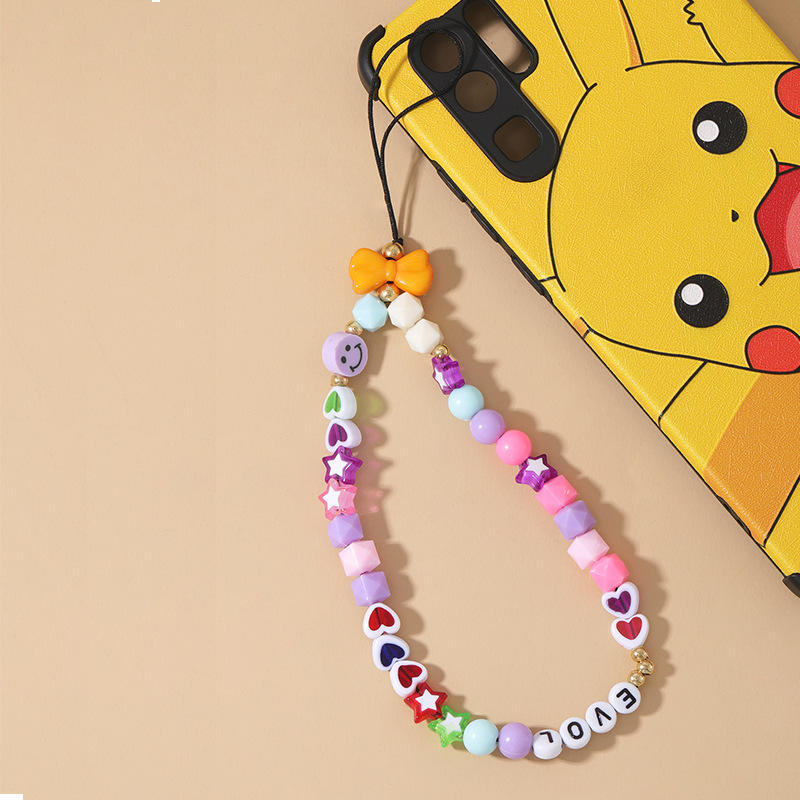 สายคล้องโทรศัพท์หลากสีสำหรับผู้หญิงทำมือสไตล์ลูกปัดรูปหัวใจตัวอักษรเริ่มต้นทำด้วยมือ