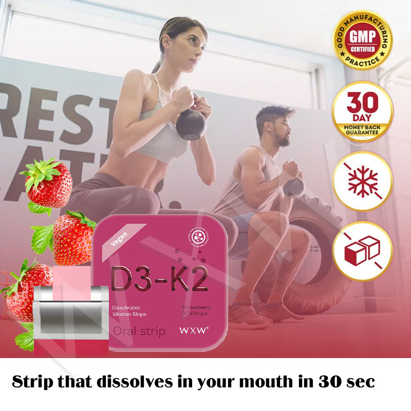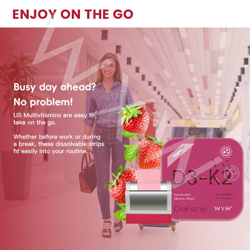 New Hot Selling D3-K2 Vitamin C Immune Support Oral Dissolving Strips in Strawberry Flavor for Teenagers