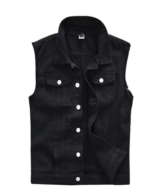 เสื้อกั๊กเดนิมผสมผ้าฝ้ายระบายอากาศกันลมแฟชั่นขายดีรุ่นใหม่สำหรับผู้ชาย ชุดลำลองฤดูร้อน คอวี ปิดด้วยเข็มขัด บริการ OEM
