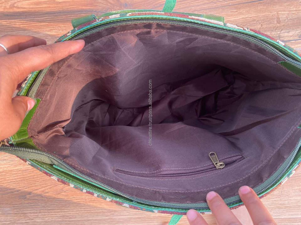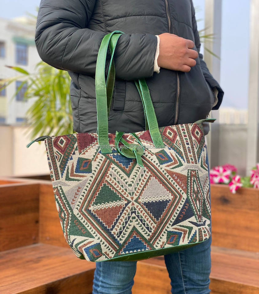 กระเป๋าโท้ทหนังแท้ผ้าแจ็คการ์ดงานแฮนด์เมดใหม่ใช้ได้หลายรูปแบบกระเป๋าช้อปปิ้งสไตล์วินเทจสินค้าจำนวนมาก