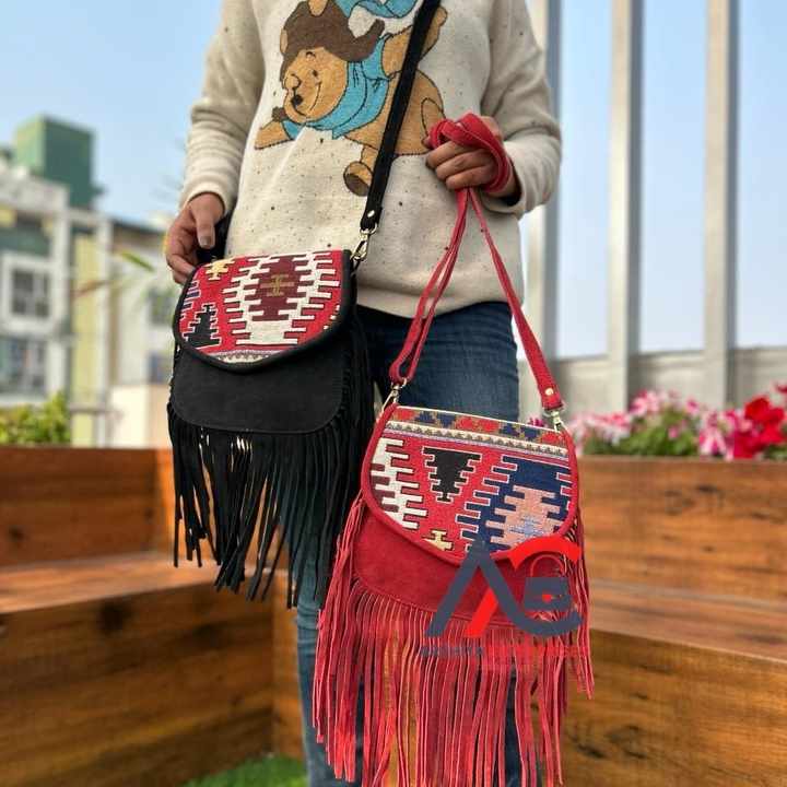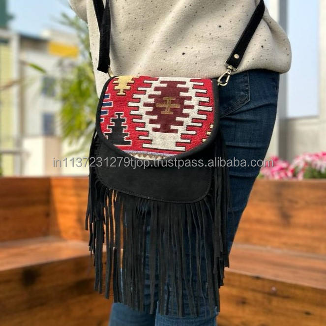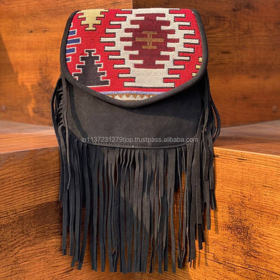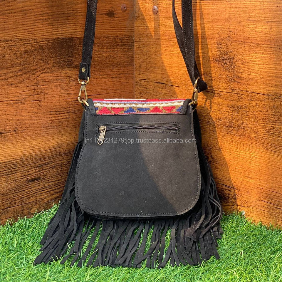 New Hot Selling Jacquard Handmade Suede Fringe Leather Sling Bag Multi Use Vintage Design Crossbody Bag Cheap Rate Bulk Product