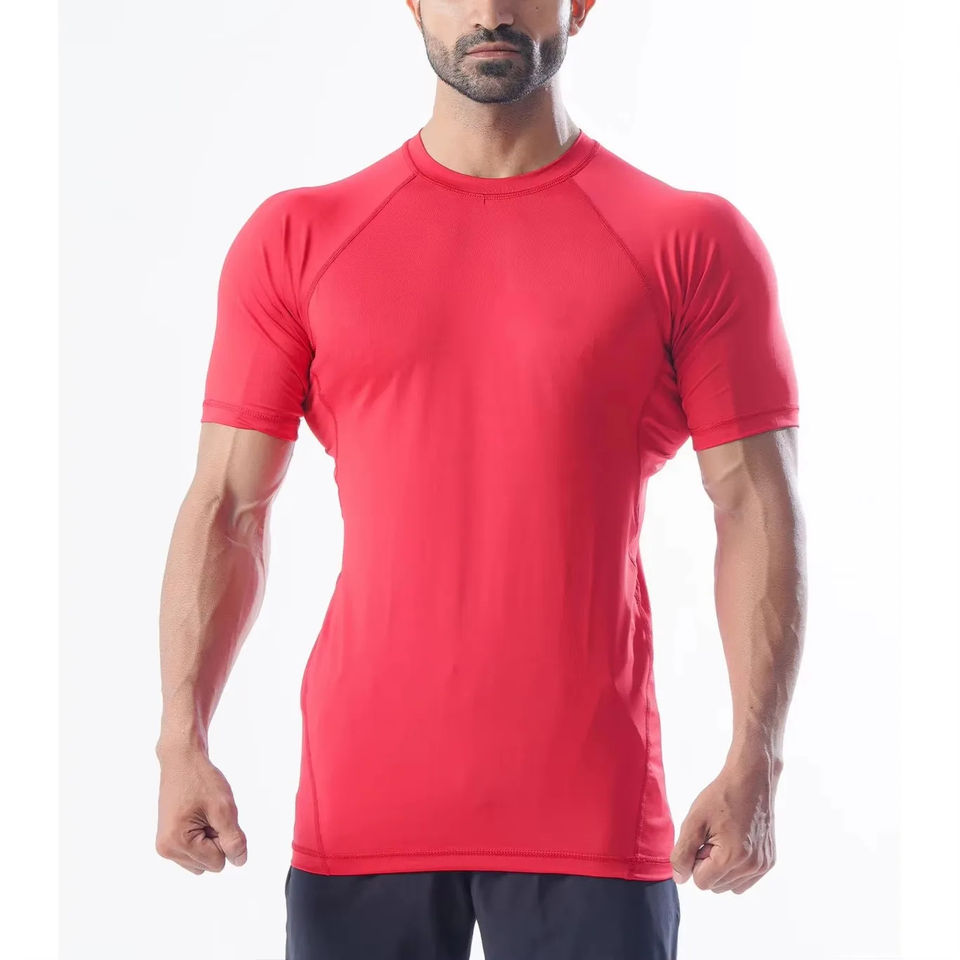 เสื้อยืดออกกำลังกายผู้ชายรุ่นใหม่ขายดี ผ้ารัดรูป พิมพ์โลโก้ได้ตามต้องการ บริการ OEM น้ำหนักเบา