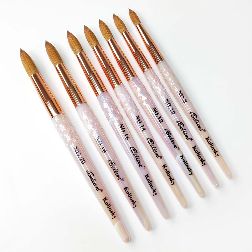 แปรงทาเล็บแบบพรีเมี่ยม Kolinsky ทำจากอะคริลิคบริสุทธิ์สีชมพูอุปกรณ์ทำเล็บโลโก้ตามสั่ง