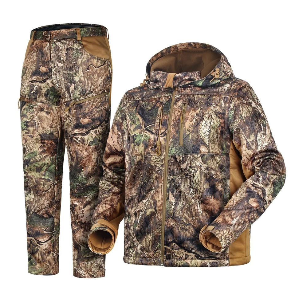 ชุดล่าสัตว์ฤดูหนาวใหม่สำหรับผู้ชาย ลายพราง กันน้ำ กันลม เสื้อแจ็คเก็ตและกางเกงสำหรับล่าสัตว์ พิมพ์ลายตามสั่ง
