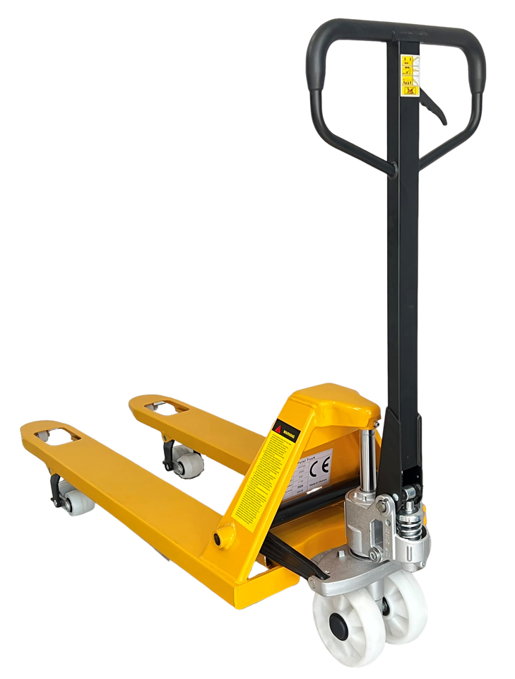 รถยกพาเลทไฮดรอลิกแบบใหม่ รับน้ำหนัก 2.5 ตัน ขนาดงา 1150x540 มม. ผลิตในเวียดนาม วัสดุสำหรับงานโลจิสติกส์ มาตรฐาน CE