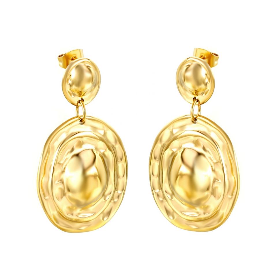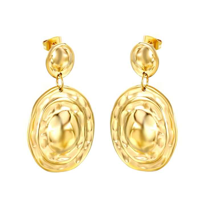 ต่างหูแบบห้อยสำหรับผู้หญิง ทำจากสแตนเลสสตีลชุบทอง 18k ดีไซน์ผิวสัมผัสแบบออร์แกนิก กันน้ำ ป้องกันอาการแพ้ ขายส่ง