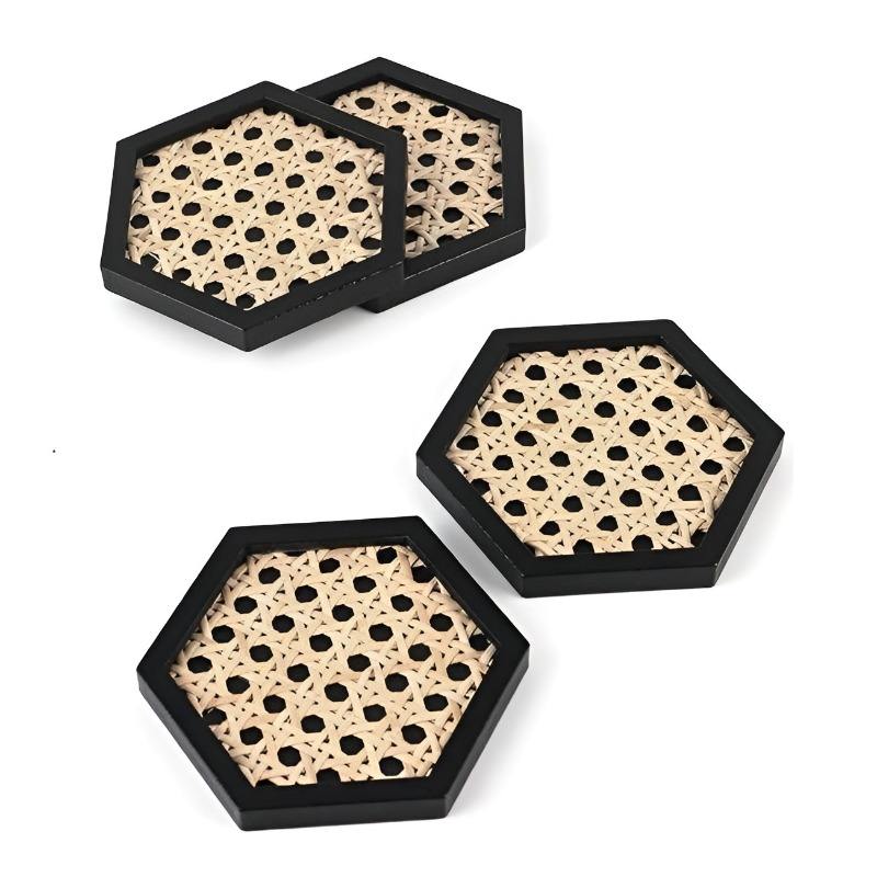 แผ่นรองแก้วน้ำชาหวายรูปหกเหลี่ยมทำมือ ไอเดียใหม่ ของตกแต่งบ้านและครัว ของชำร่วยงานแต่งงาน แผ่นรองแก้วน้ำชาหวาย