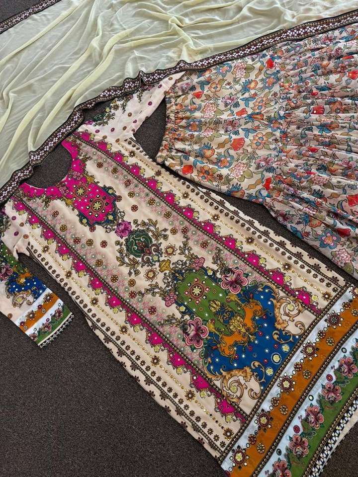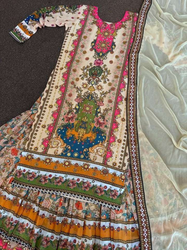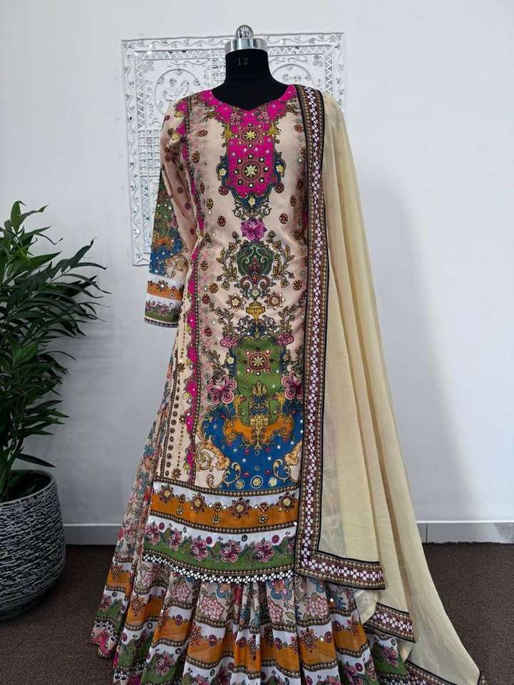 นักออกแบบอินเดียใหม่ Kurta Sharara ตั้งชุด Sharara จอร์เจตต์ปักสวยงามพร้อมชุดปาร์ตี้วันหยุด Koti ชุดสําเร็จรูป