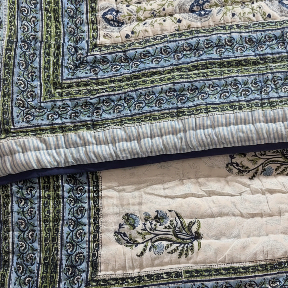 ผ้าห่มควีนไซส์ลายปะติดพิมพ์ลายอินเดียแบบดั้งเดิม สไตล์วินเทจ ผ้าฝ้ายคันธา นุ่ม ใช้ได้สองด้าน เหมาะสำหรับฤดูหนาว สำหรับโรงแรม