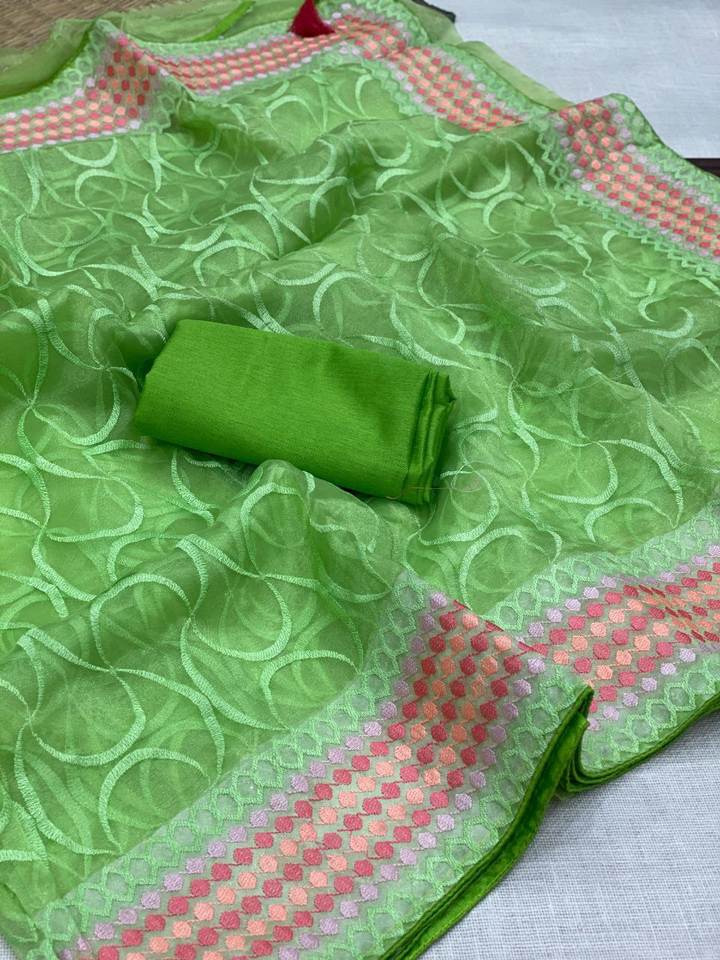 ชุดส่าหรีสีฟ้าออร์แกนิคระบายอากาศได้ดีสำหรับแต่งตาใหม่จากนักออกแบบแบบดั้งเดิมของอินเดีย