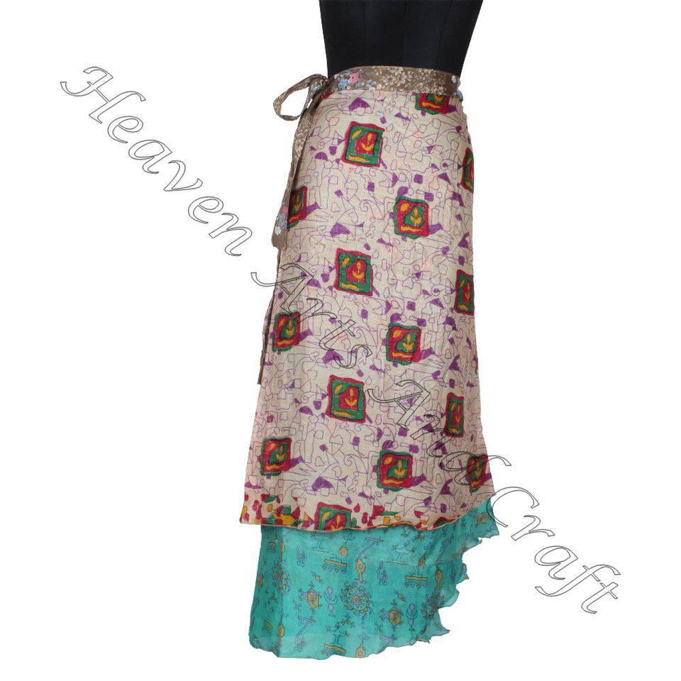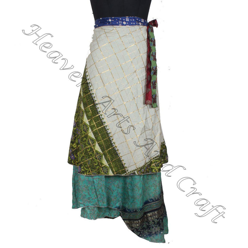 กระโปรงผ้าไหมยาว2ชั้นสไตล์วินเทจสำหรับผู้หญิงกระโปรงยาวคลุมรอบรอบแบบ2ชั้นสไตล์อินเดียวินเทจ