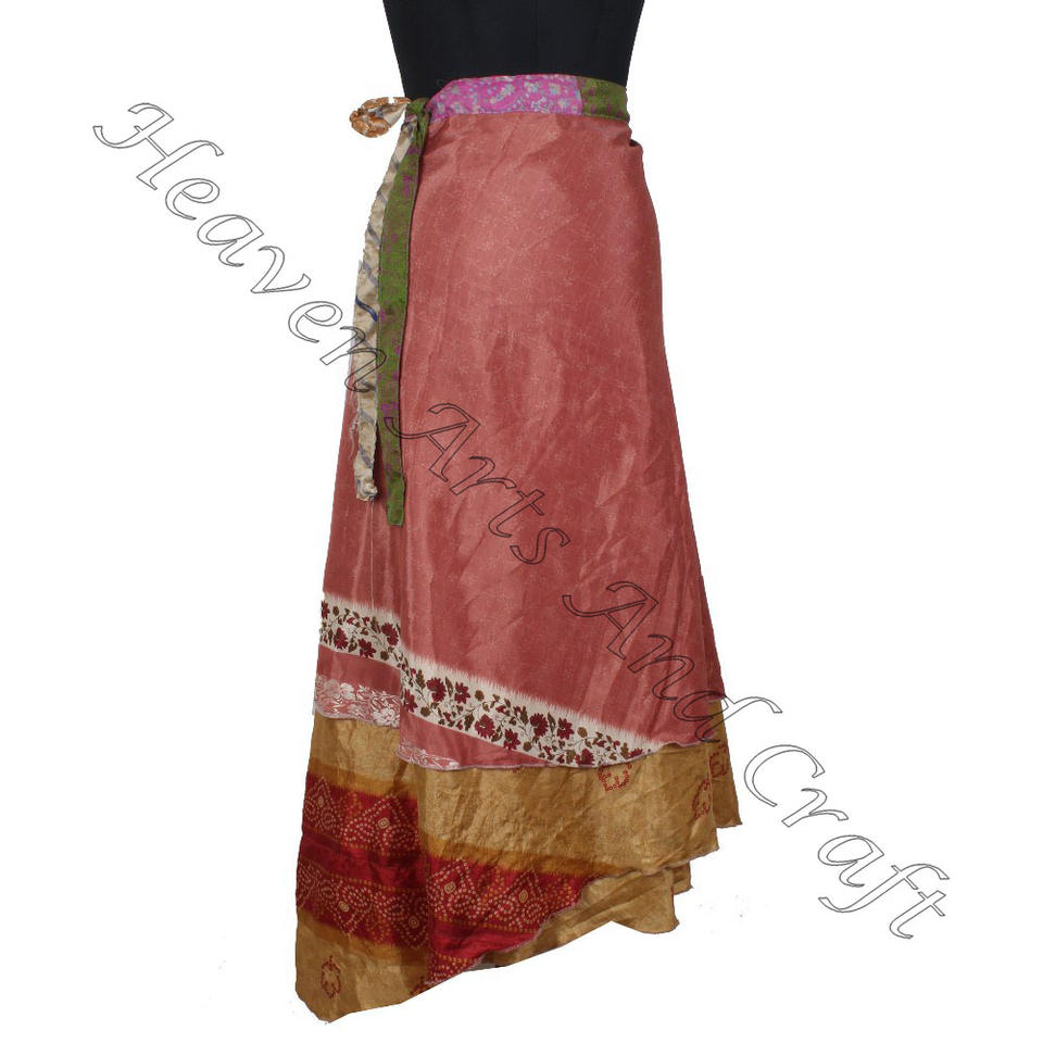 กระโปรงผ้าไหมฮิปปี้ซารี2ชั้นวินเทจสไตล์อินเดียใหม่สำหรับใส่ไปชายหาดชุดผ้าไหมวินเทจแบบกลับด้านความยาว38นิ้ว