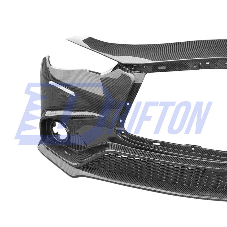 กันชนหน้าคาร์บอนไฟเบอร์สำหรับ Infiniti Q60 รุ่นปี 2016-2022 ยี่ห้อ New Drifton ลายทอ 3K/6K/12K ผิวเงาและด้าน ติดตั้งแบบ Bolt-On พร้อมป้องกันรังสียูวี