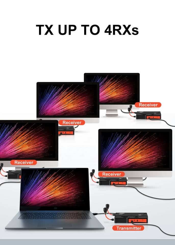 ระบบส่งสัญญาณภาพไร้สายแบบ HD รุ่นใหม่ พร้อมตัวรับสัญญาณ สำหรับเชื่อมต่อแล็ปท็อป พีซี คอมพิวเตอร์กับโปรเจคเตอร์ ความละเอียด 1080P