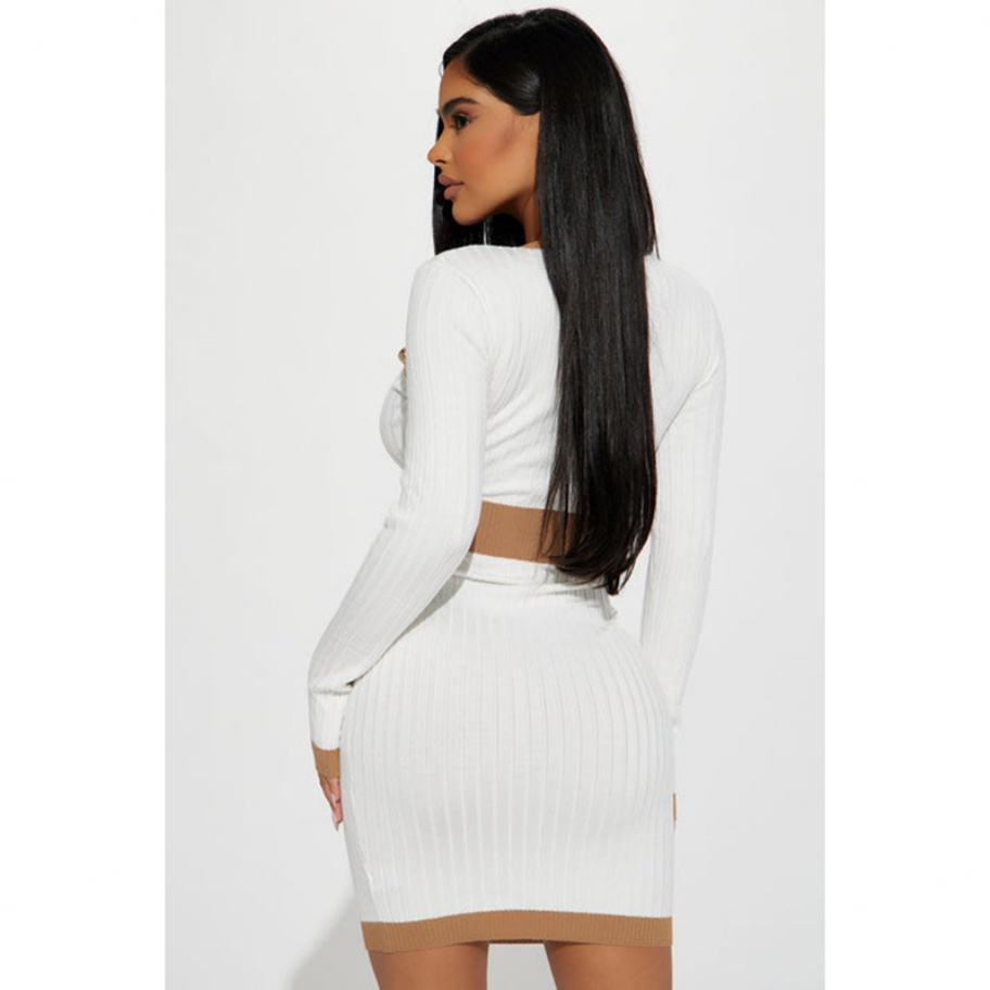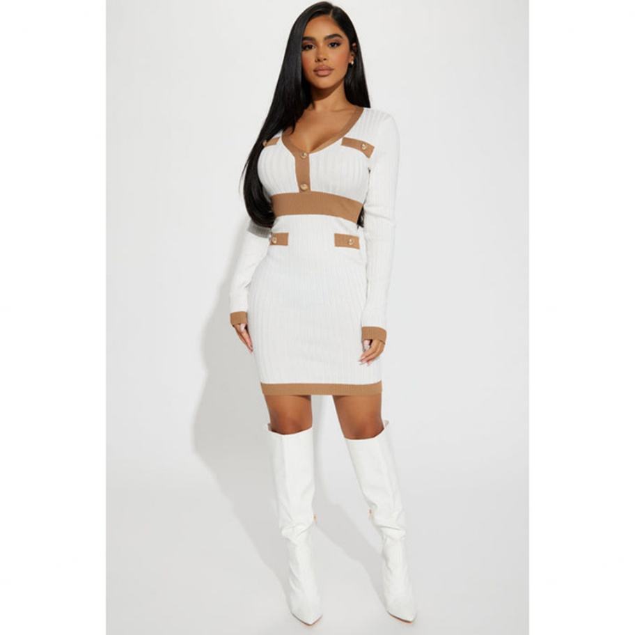 เสื้อคาร์ดิแกนถักไหมพรมคอวีแบบใหม่ พร้อมหัวเข็มขัดโลหะ สีพื้น ชุดเดรสไหมพรมถัก