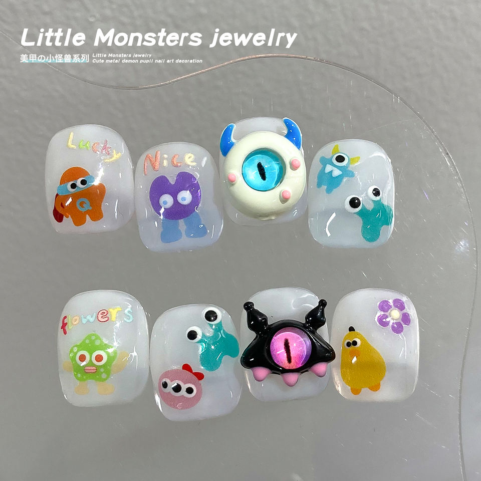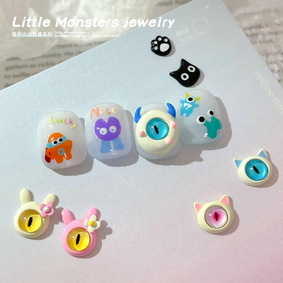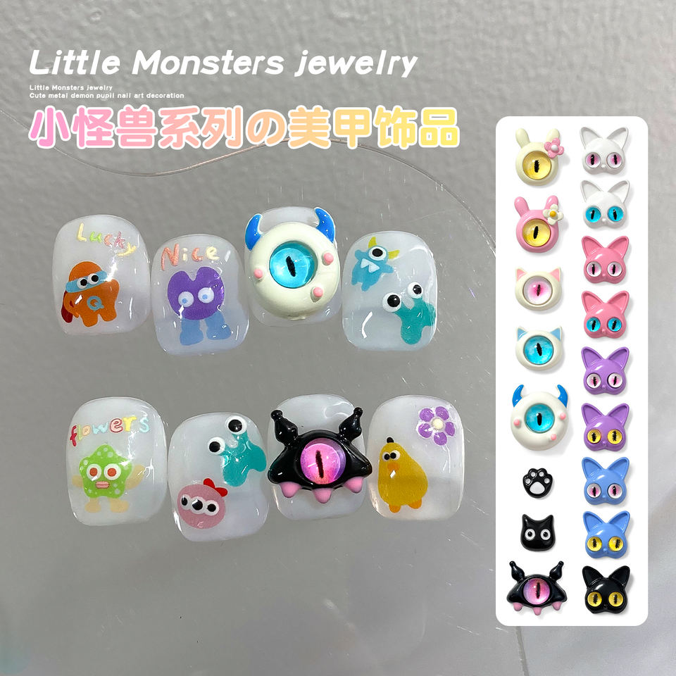 เครื่องประดับตกแต่งเล็บ 3 มิติ สไตล์ใหม่สุดฮิต ลายตาปีศาจ น่ารัก สไตล์มอนสเตอร์และแมว สำหรับร้านเสริมสวย