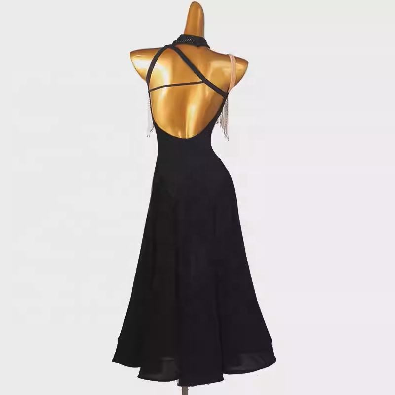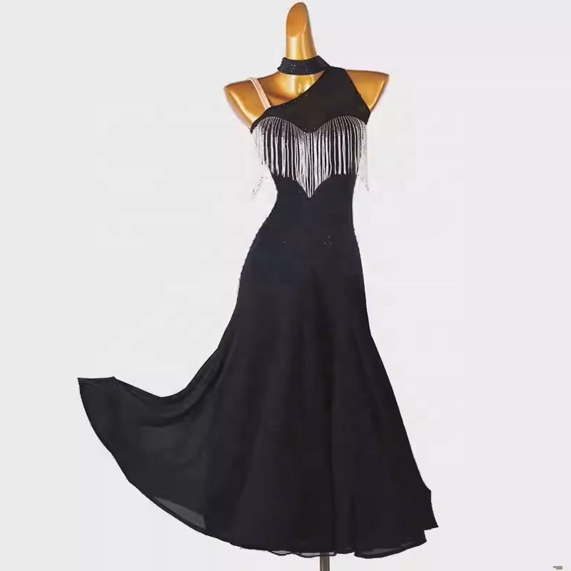 ชุดแข่งขันเต้นรำลาตินสมัยใหม่ระดับนานาชาติใหม่ ชุดกระโปรงผ้าไหม/ผ้าฝ้ายคุณภาพสูง ชุดเต้นรำมาตรฐาน กระโปรงยาวเต็มตัว Q389