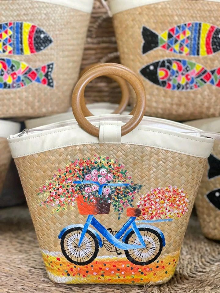 กระเป๋าชายหาดสำหรับผู้หญิงงานฝีมือหวายสไตล์เวียดนามดีไซน์วินเทจสินค้าใหม่