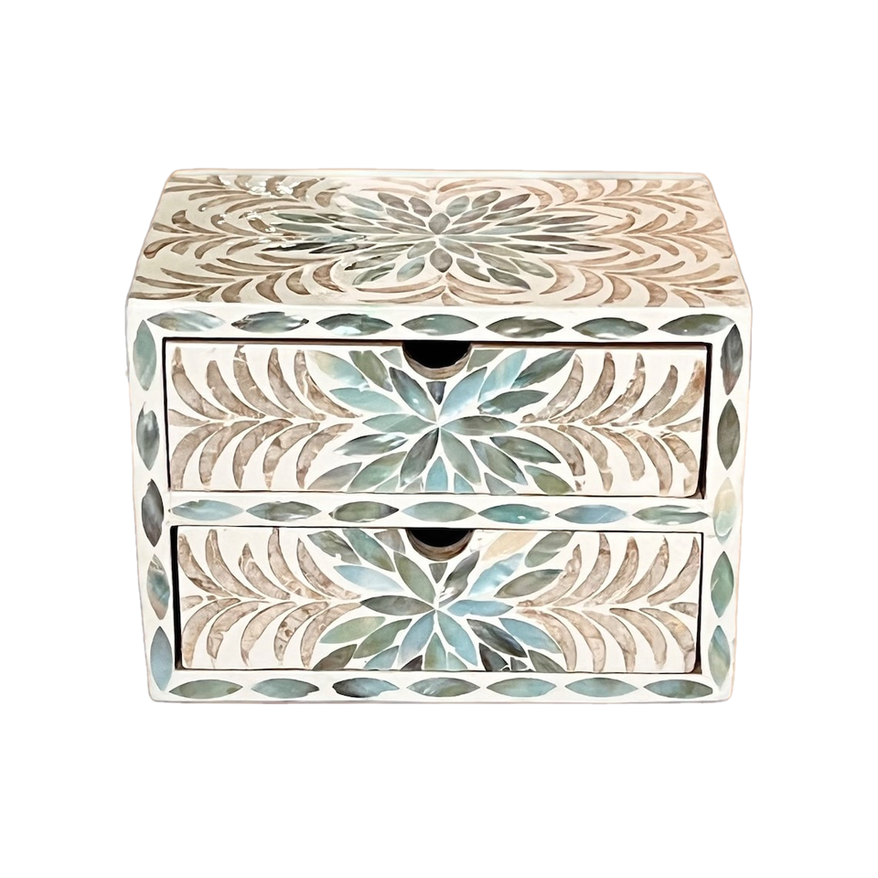 กล่องเครื่องประดับฝังมุกมีสองลิ้นชักลายใบไม้สีทองชื่อผลิตภัณฑ์