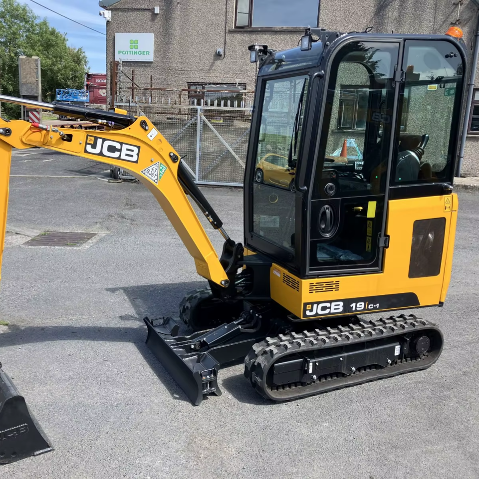 JCB 19C-1ขุดขนาดเล็กทำหน้าที่คู่เสริมรถแท็กซี่เต็มรูปแบบพร้อมเครื่องทำความร้อนสำหรับการก่อสร้างและการเคลื่อนย้ายดิน