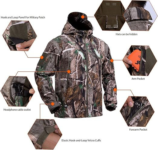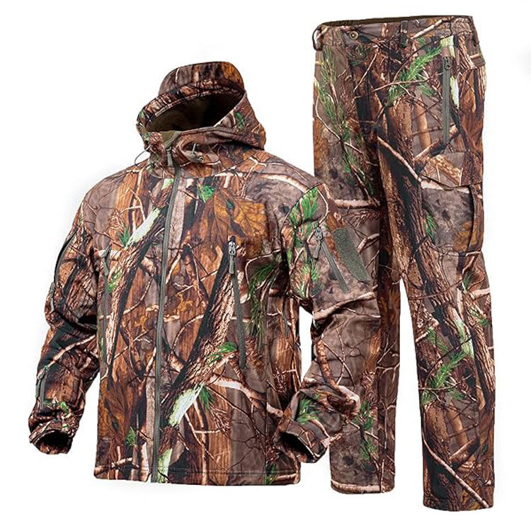 ชุดลายพรางสำหรับผู้ชาย เสื้อแจ็คเก็ตกันน้ำ เสื้อผ้าสำหรับล่าสัตว์ ชุดล่าสัตว์ เสื้อแจ็คเก็ตและกางเกงสำหรับล่าสัตว์
