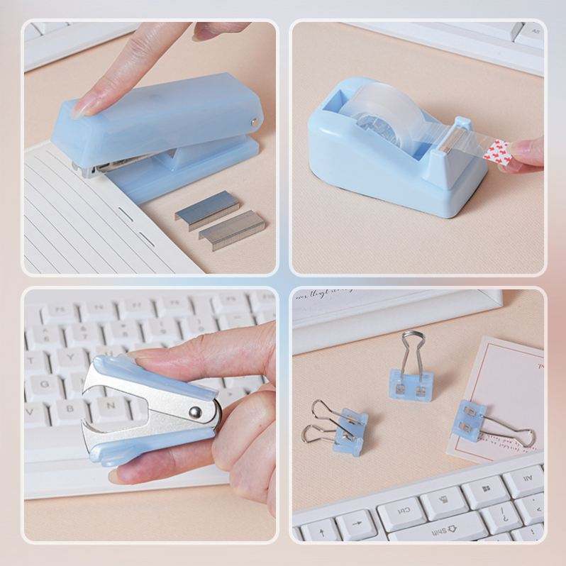 ชุดเครื่องเขียนตั้งโต๊ะสำนักงานสีหยกใหม่กรรไกรตัดเทปที่เย็บกระดาษแบบข้ามพรมแดนขายส่ง