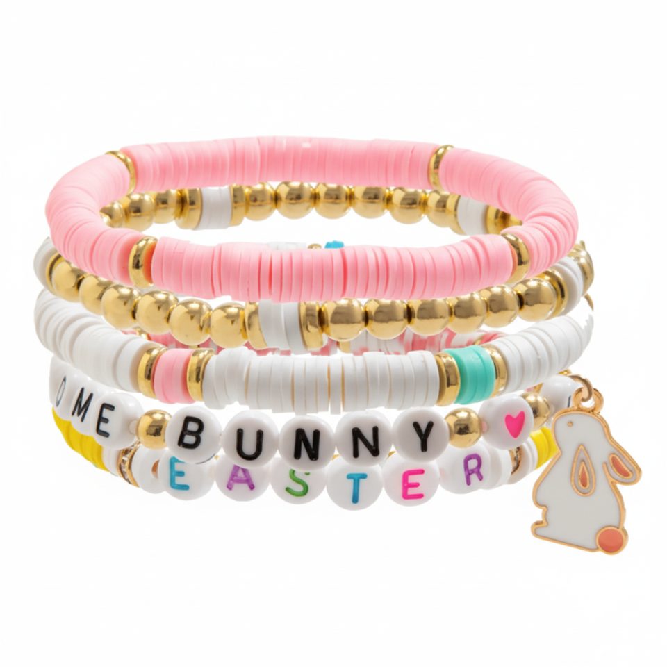 เครื่องประดับใหม่สร้อยข้อมือลูกปัดตัวอักษร5ชั้นกำไลข้อมือลูกปัดสำหรับเด็กผู้หญิงของขวัญอีสเตอร์พร้อมจี้กระต่าย