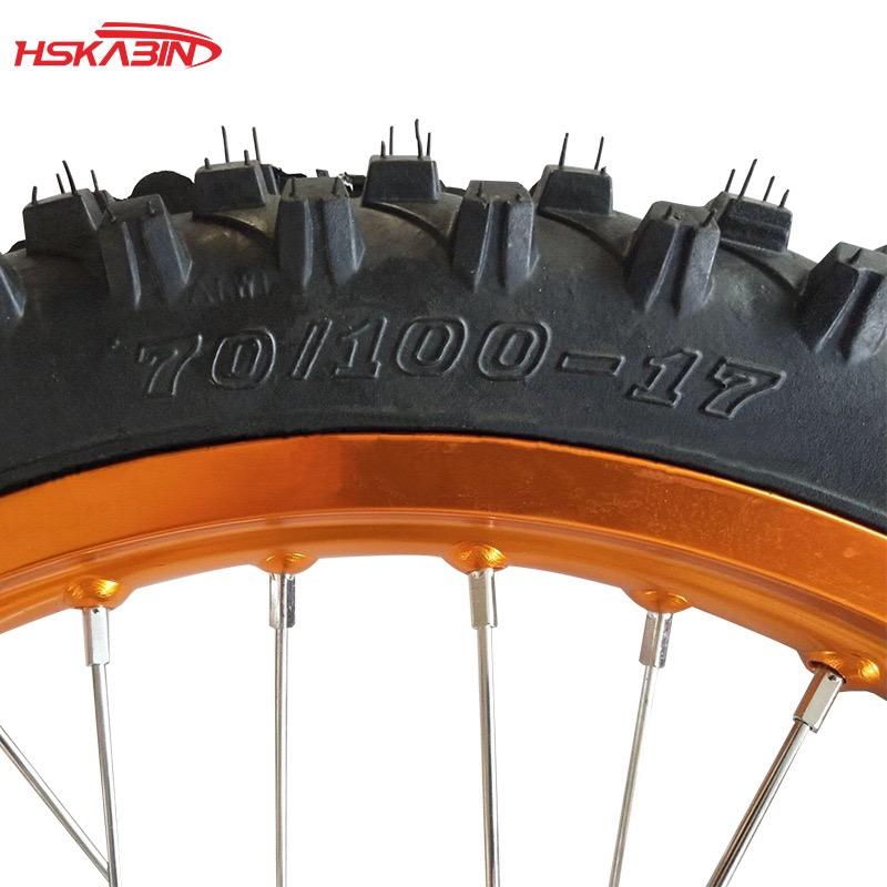 ล้อโมโตครอส KB ใหม่ ขนาดหน้า 17 นิ้ว และหลัง 14 นิ้ว วงล้ออะลูมิเนียม ยางสีดำ แกนดรัม สำหรับเปลี่ยน/ซ่อมแซม