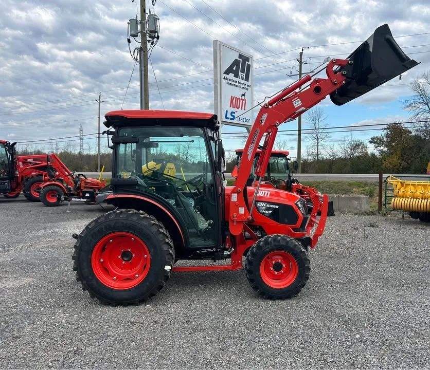 รถแทรกเตอร์ KIOTI DK5320SE HST รุ่นใหม่ 90 แรงม้า พร้อมเกียร์ขับเคลื่อน 4 ล้อ สำหรับงานเกษตร พร้อมกระบะตัก พร้อมกันชนหน้า และอุปกรณ์ต่อพ่วงแบบ Quick Attach ขนาด 72 นิ้ว