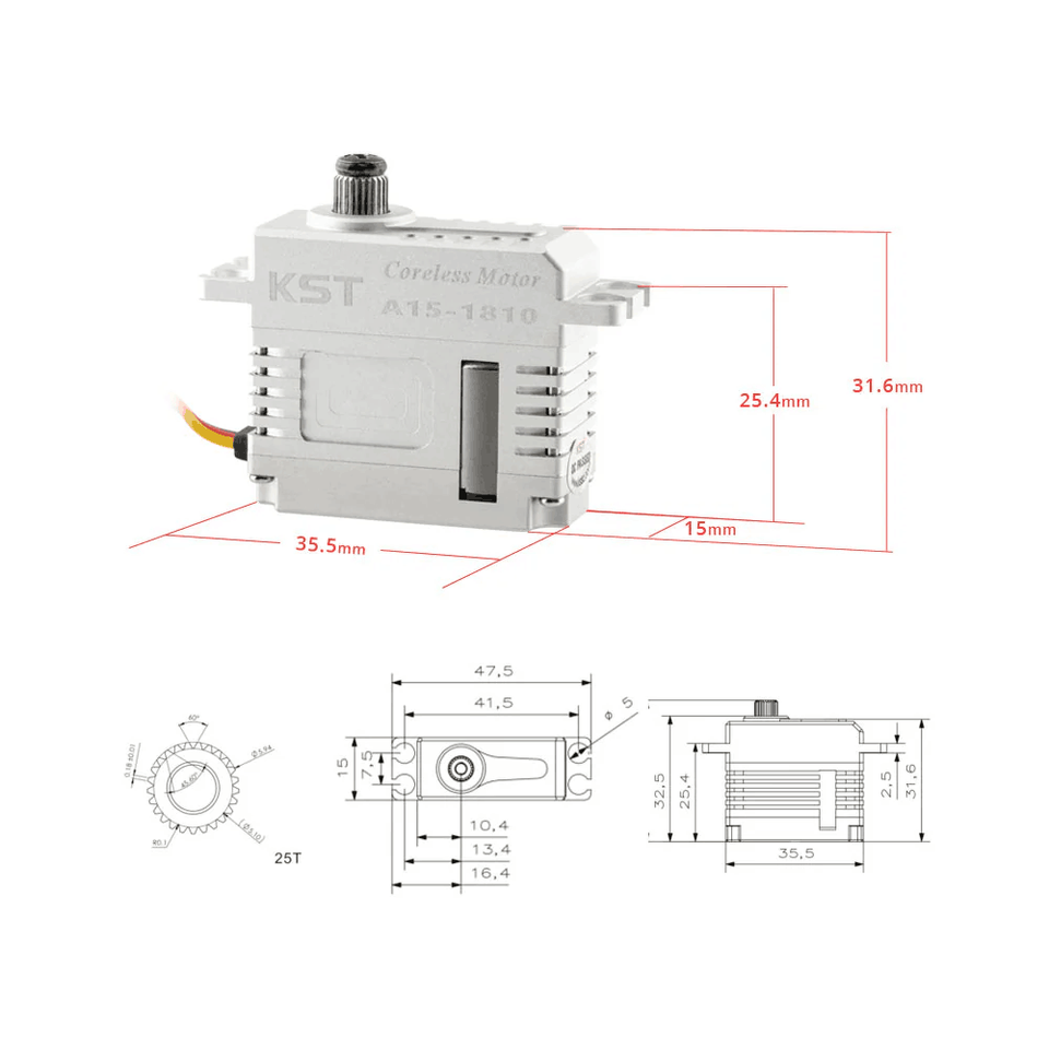 เกียร์เหล็กฟอสเฟอร์บรอนซ์แบบไม่มีแกนกลาง KST A15-1810 20KG รุ่นมาตรฐานความแม่นยำสูง สำหรับปีกเครื่องบินบังคับวิทยุขนาดเล็ก