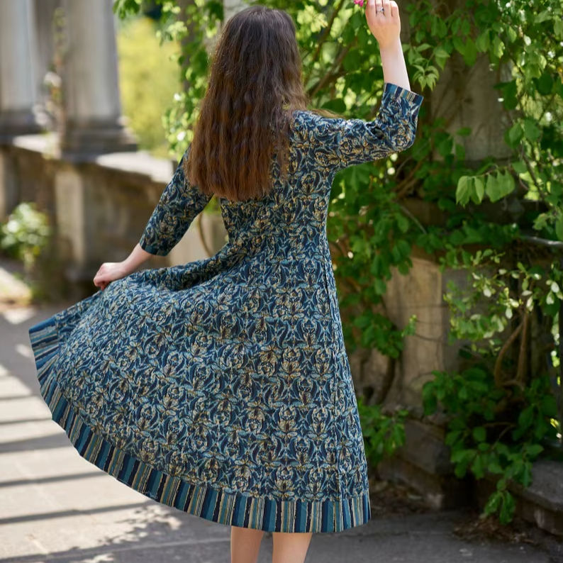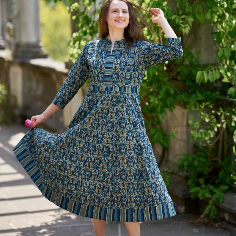 เดรสสั้นลายดอกไม้สไตล์โบฮีเมียน รุ่นใหม่ ผ้าคอตตอนผสม ลายนูน ซักได้ สีฟ้าเขียว | งานแฮนด์เมดที่เป็นมิตรต่อสิ่งแวดล้อมสำหรับวันหยุดฤดูร้อนแบบสบายๆ