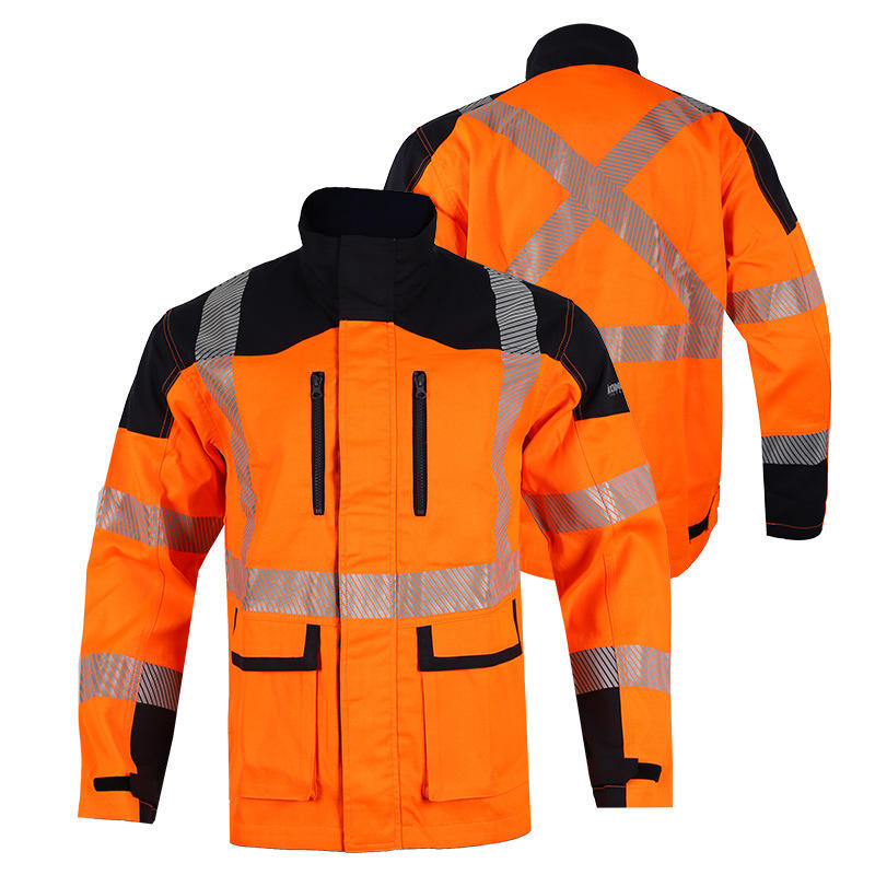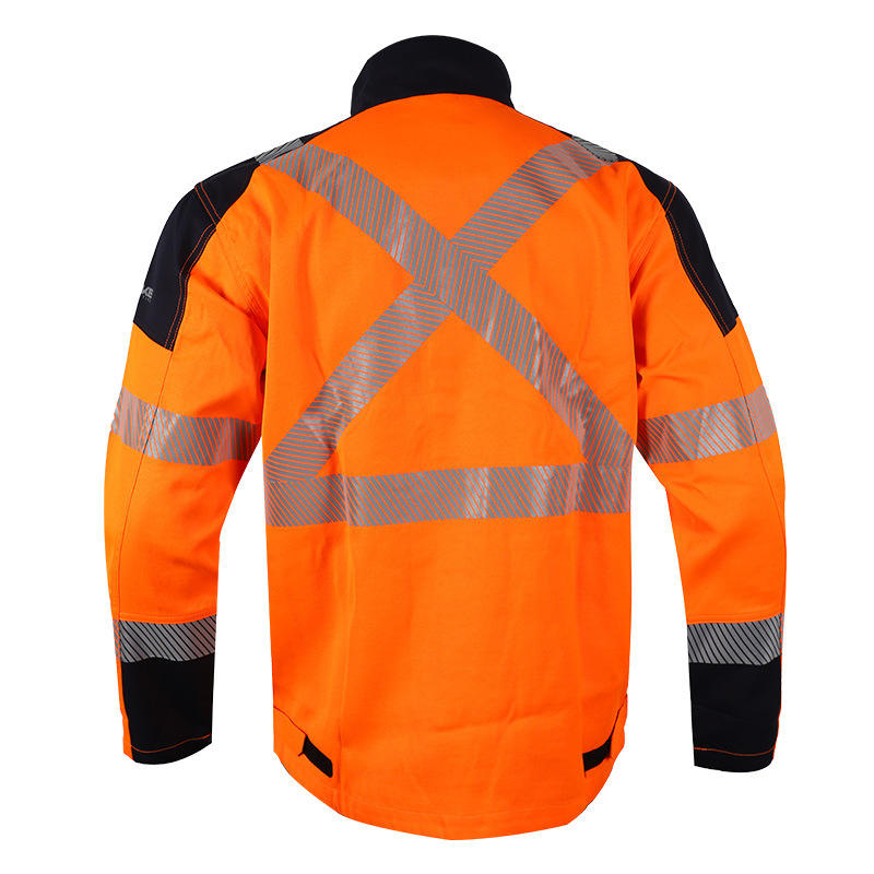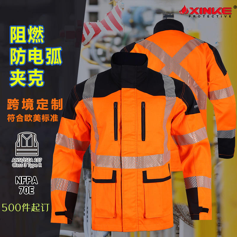 เสื้อแจ็คเก็ตป้องกันไฟฟ้าสถิตย์ รุ่น New Ke สีส้มแดง ทรงปกติ เสื้อผ้าเพื่อความปลอดภัยมองเห็นได้ชัดเจนสำหรับงานอุตสาหกรรม