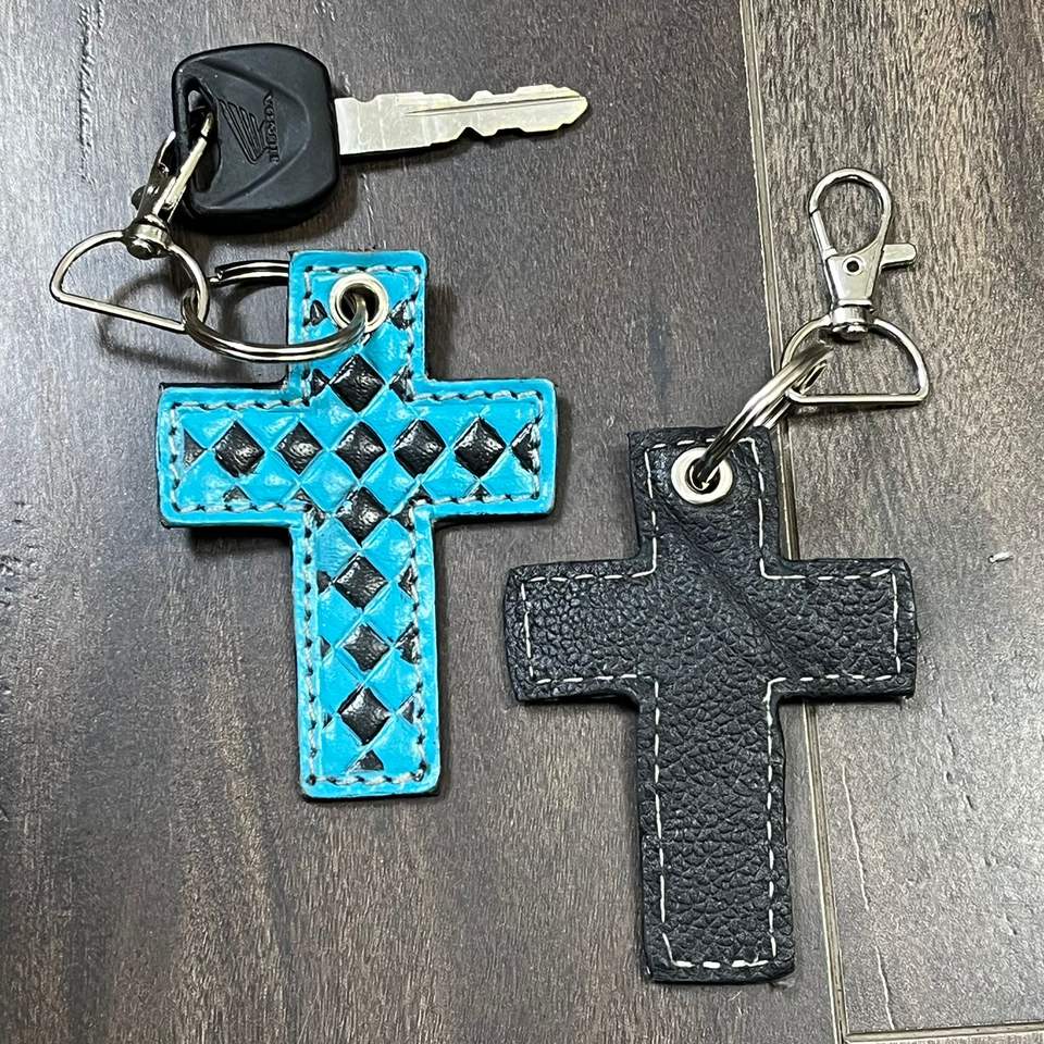 พวงกุญแจหนังลายตารางหมากรุกทำมือ