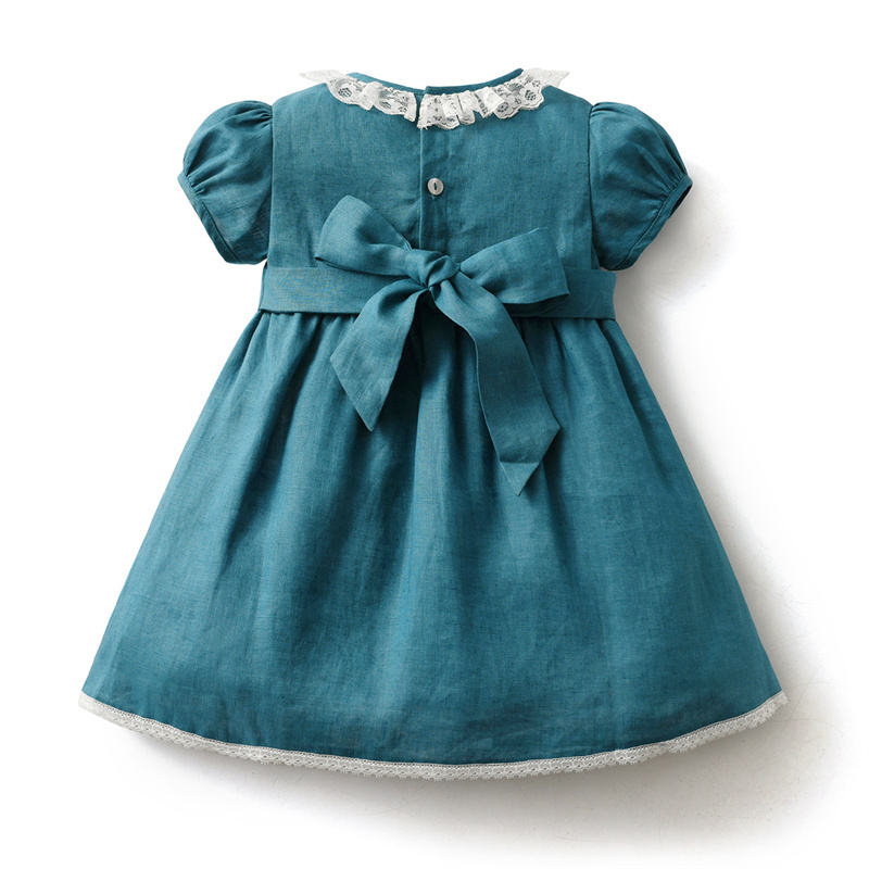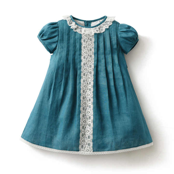 ชุดเดรสฤดูร้อนสำหรับเด็กใหม่แขนสั้นลูกไม้สีฟ้าชุดคู่กับน้องสาวเด็กแรกเกิดชุดบูติกสเปนแบบหวานชุดเด็กผู้หญิงชุดมีระบาย