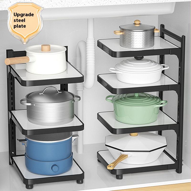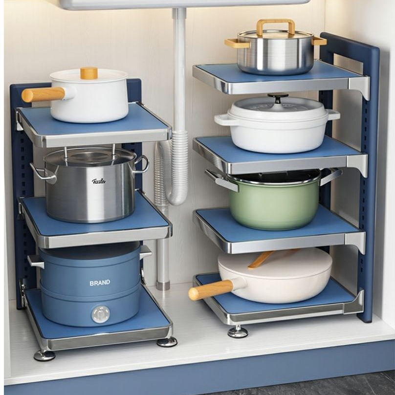 ชั้นวางของในครัวแบบใหม่ ชั้นวางหม้อ ชั้นวางกระทะ ชั้นวางมุมเคาน์เตอร์ ชั้นวางในตู้ใต้อ่างล้างจาน ชั้นวางหลายชั้น ไม่ต้องเจาะผนัง