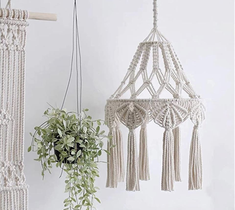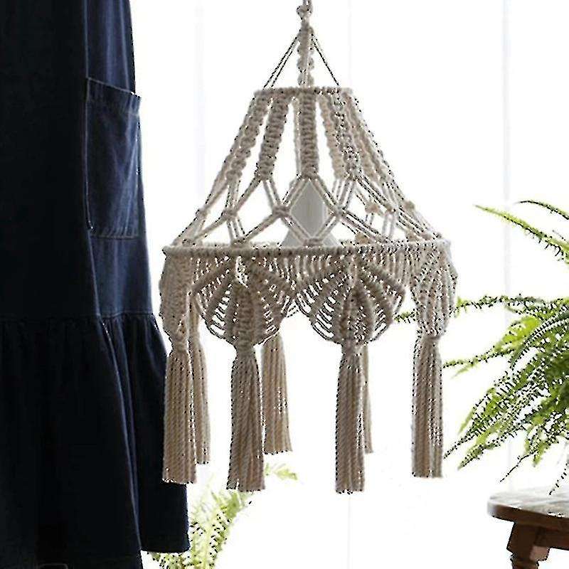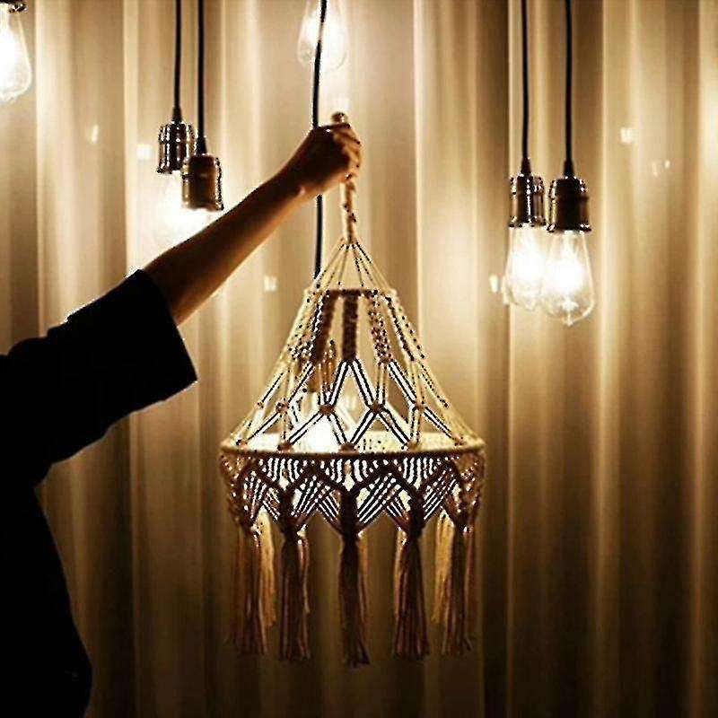โคมไฟระย้าจากฝ้ายมาคราเม่ใหม่โคมไฟเพดานสไตล์โบฮีเมียนสำหรับห้องนั่งเล่นห้องโถงทำด้วยมือสายไฟอินเดีย