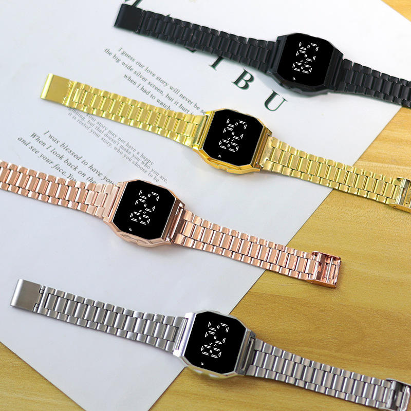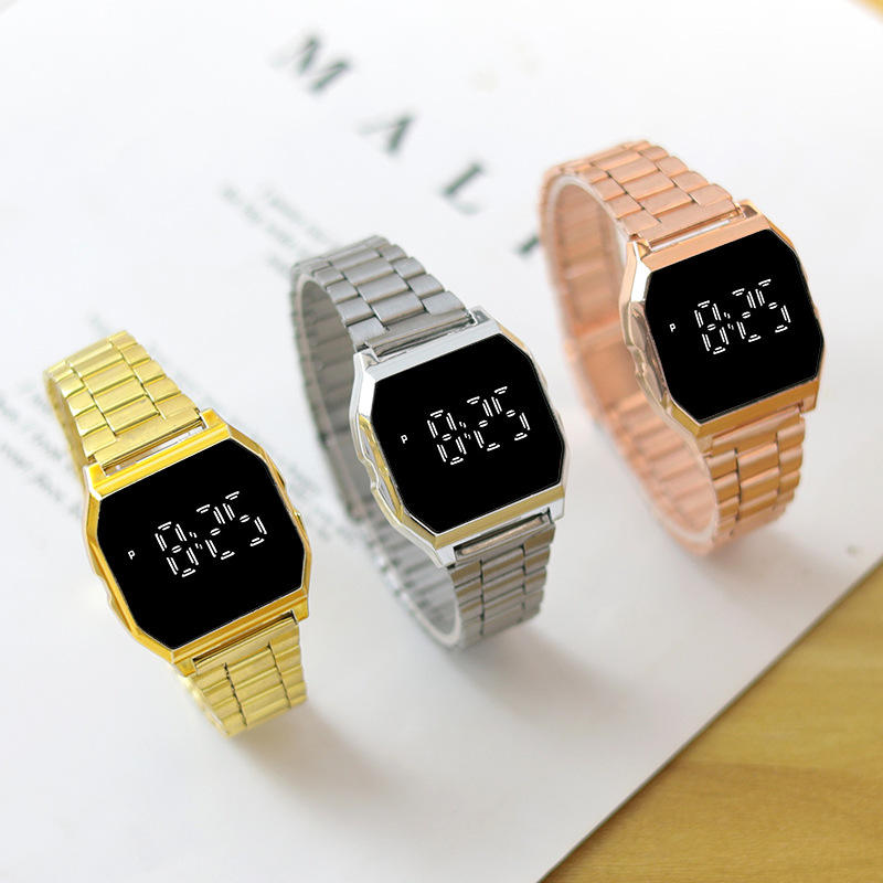 นาฬิกาอิเล็กทรอนิกส์แฟชั่น F91w ชุบโลหะด้วยไฟฟ้ารุ่นใหม่เกาหลีนาฬิกาคู่ไฟ LED สำหรับวัยรุ่นนักเรียน