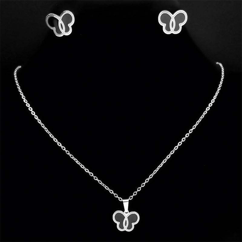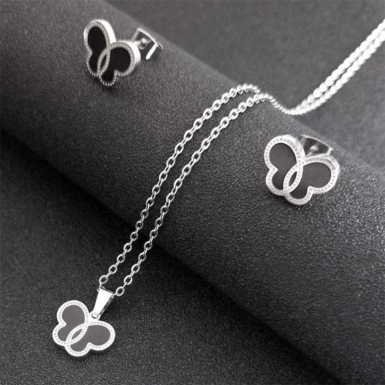 New Korean Style Fashion New Stainless Steel Animal butterfly Necklace Female Titanium Steel Set Decoration Accessories