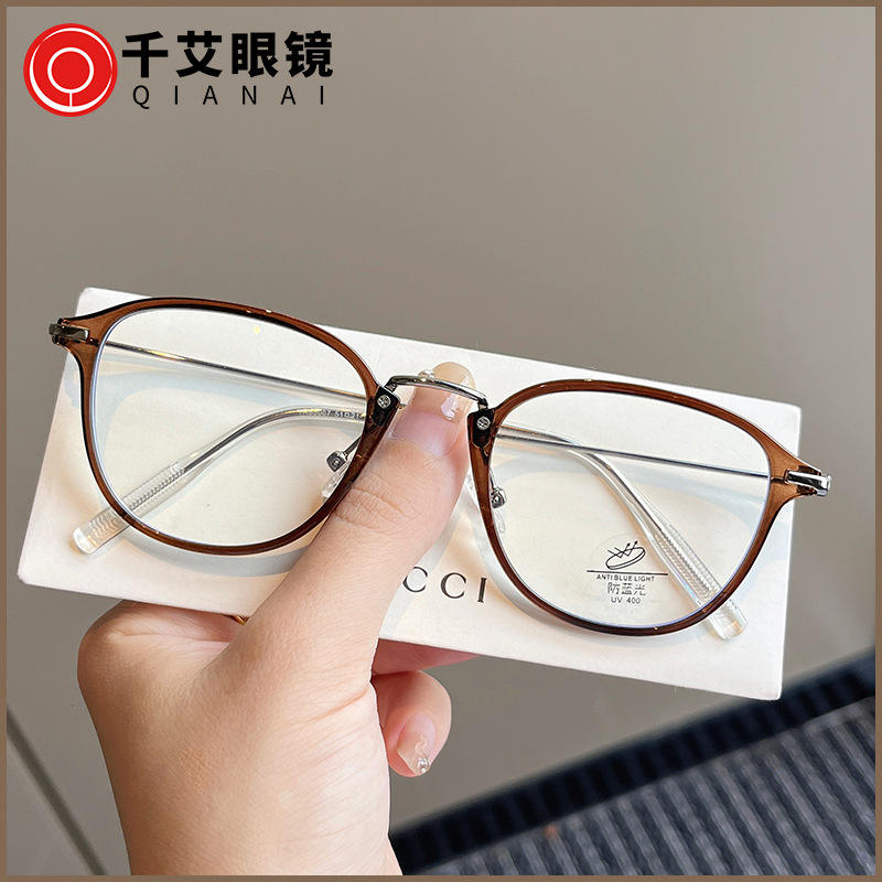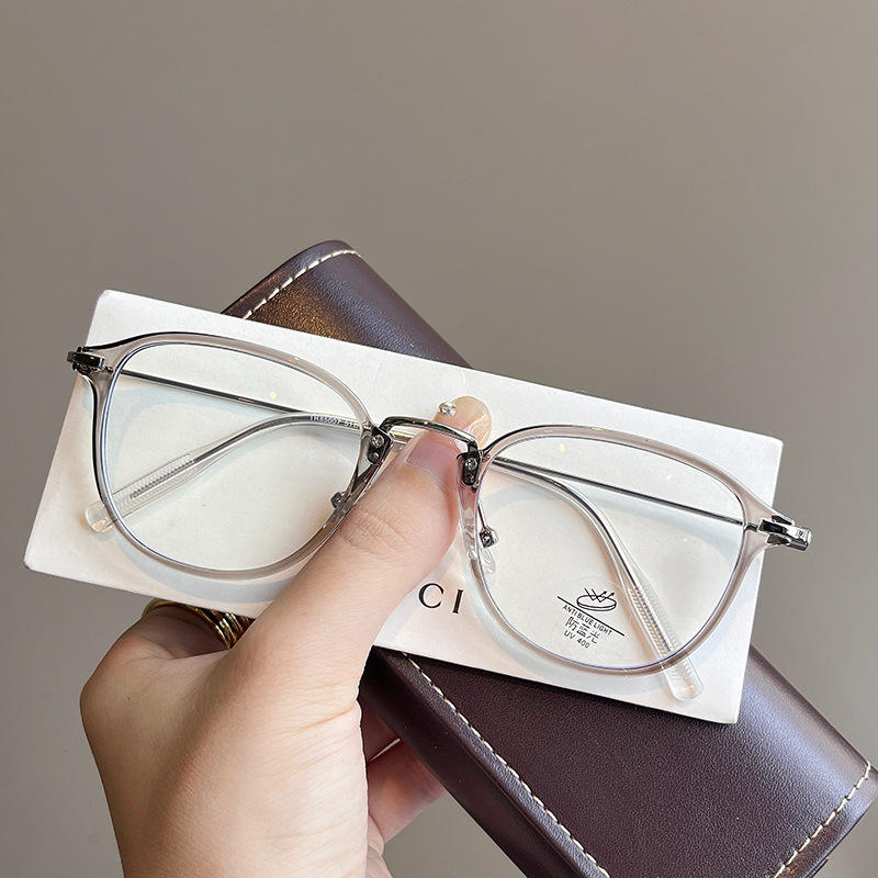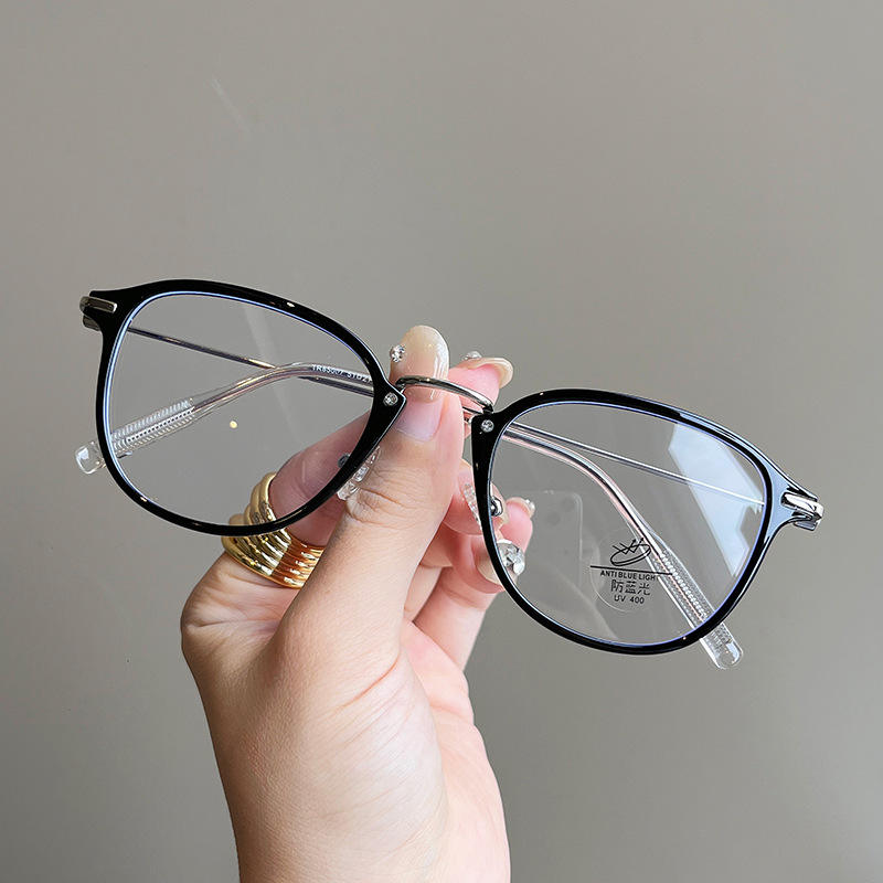 กรอบแว่นตาทรงรี TR90 สไตล์เกาหลีใหม่สำหรับผู้หญิง แว่นอ่านหนังสือป้องกันแสงสีฟ้าพร้อมเลนส์ PC ดีไซน์ศิลปะวรรณกรรม