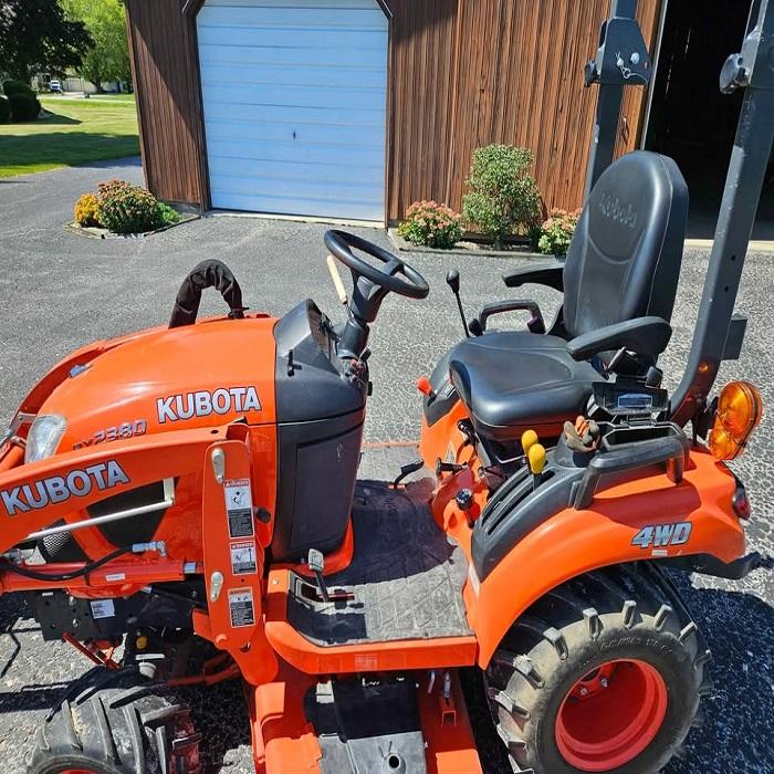 รถแทรกเตอร์ BX2380 Kubota ใหม่พร้อมเครื่องตัดหญ้ารถหัวตักดินด้านหน้าเหมาะสำหรับฟาร์มขนาดเล็กในสต็อก