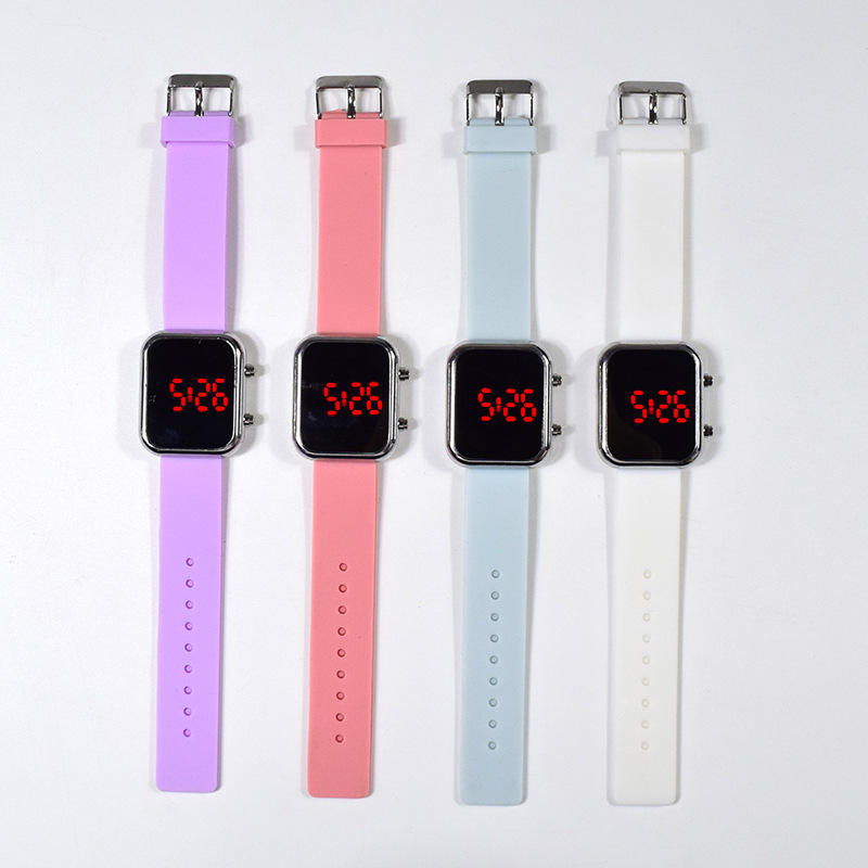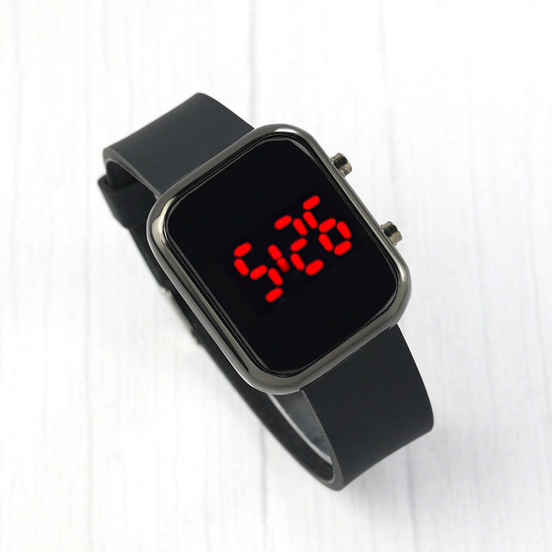นาฬิกาสปอร์ตดิจิตอล LED รุ่นใหม่ แฟชั่นสำหรับทุกเพศ สายซิลิโคน กันน้ำ 3BAR ตัวเรือนโลหะผสมทรงเหลี่ยม-ของขวัญ