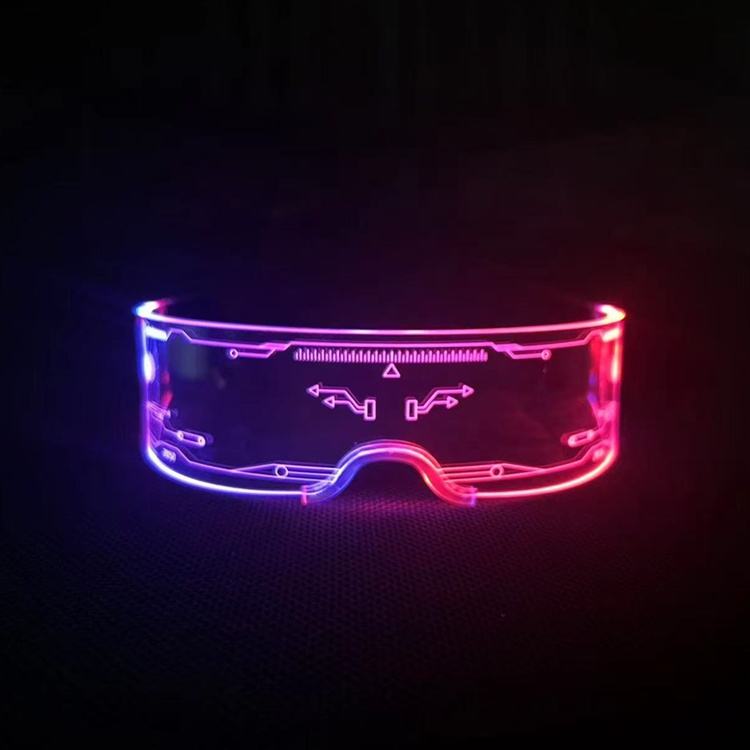 แว่นกันแดดชิ้นเดียวเรืองแสง LED สำหรับผู้ชายแนววิทยาศาสตร์สไตล์ไซเบอร์พังค์สำหรับบาร์ดิสโก้ผู้หญิงงานรับปริญญาวันขอบคุณพระเจ้า