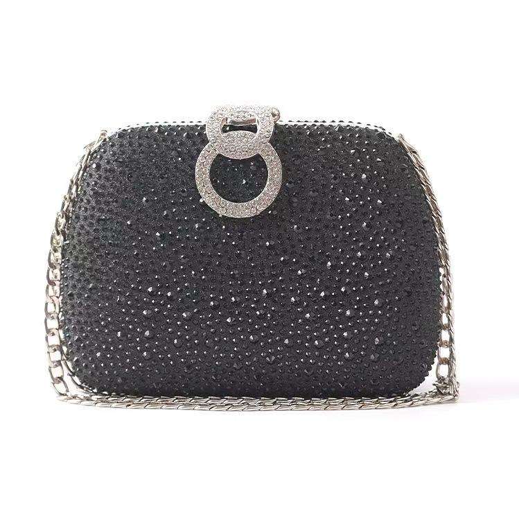 กระเป๋าคลัทช์สำหรับงานเลี้ยงสำหรับผู้หญิงรุ่นใหม่ ประดับด้วยเพชรเทียม วัสดุ PU แฟชั่น ขนาด 20x7x12 ซม. ปิดแบบ Snap พร้อมสายสะพายไหล่
