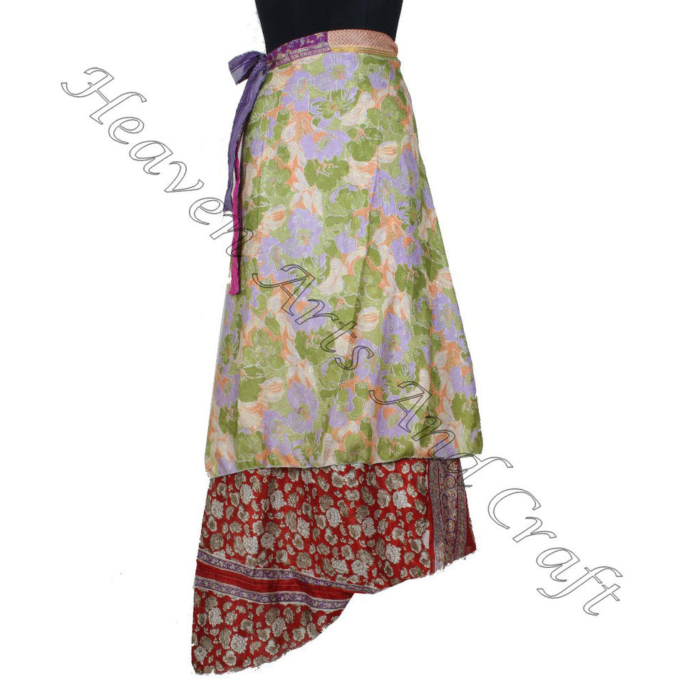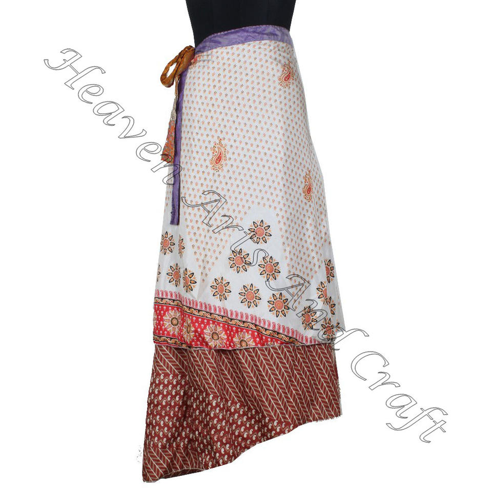 ใหม่กระโปรงทรงยอบสไตล์ยิปซี Boho, 2ชั้นผ้าไหมมหัศจรรย์แบบเปลี่ยนได้กระโปรงยาวกระโปรงชายหาดวินเทจผ้าไหมมหัศจรรย์38"