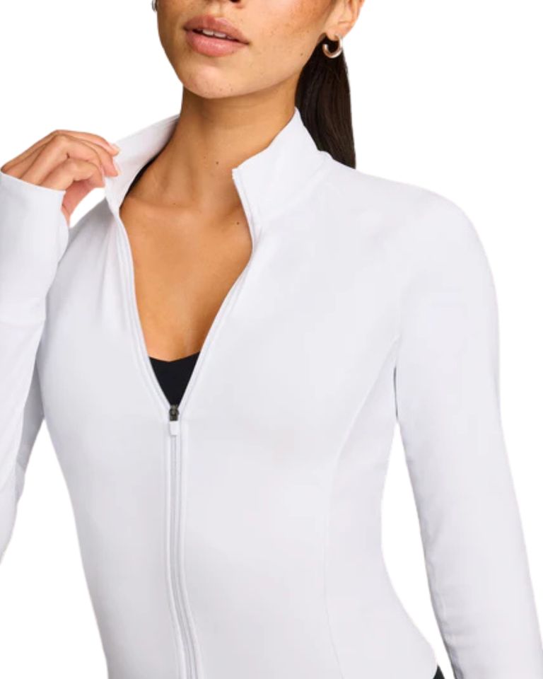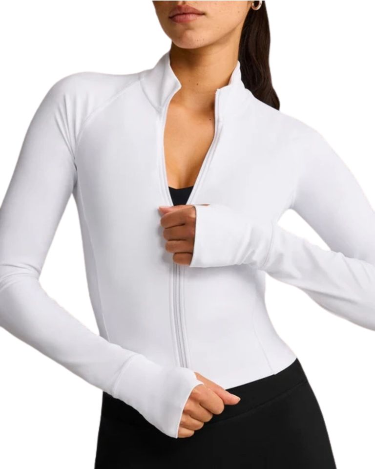 เสื้อแจ็คเก็ตออกกำลังกายผู้หญิงทรงสลิมฟิต น้ำหนักเบา ซิปเต็มตัว มีช่องสำหรับนิ้วโป้ง คอตั้ง ระบายอากาศ กันน้ำ เหมาะสำหรับวิ่งและออกกำลังกายในยิม
