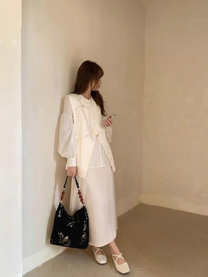 กระเป๋าโท้ทปักลายสไตล์จีนขนาดใหญ่แบบใหม่ กระเป๋าสะพายไหล่ลำลองสำหรับเดินทาง กระเป๋าถือลายเรขาคณิต