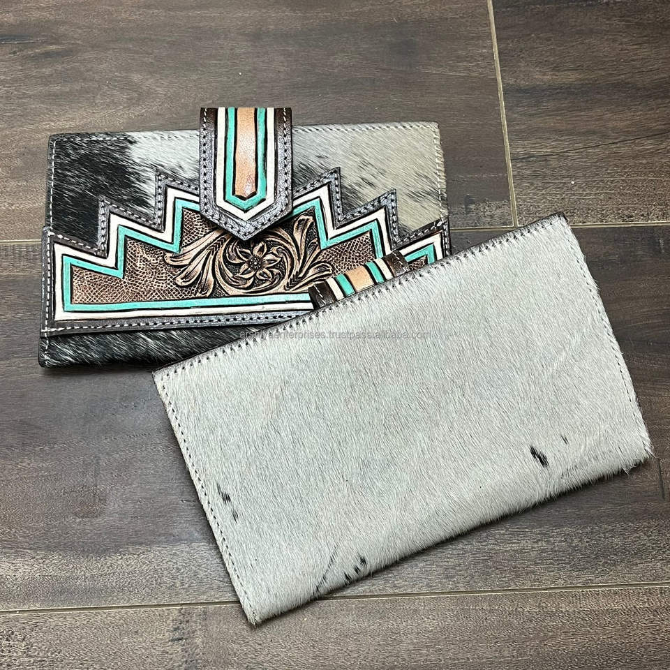 ชื่อสินค้า:กระเป๋าสตางค์หนังวัวแท้ งานฝีมือ ประดับขนสัตว์
