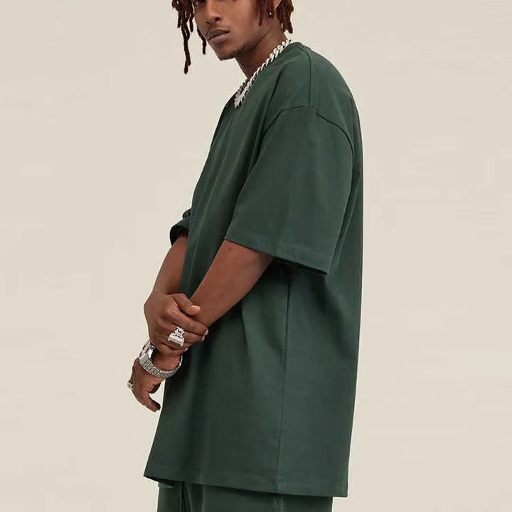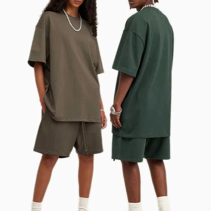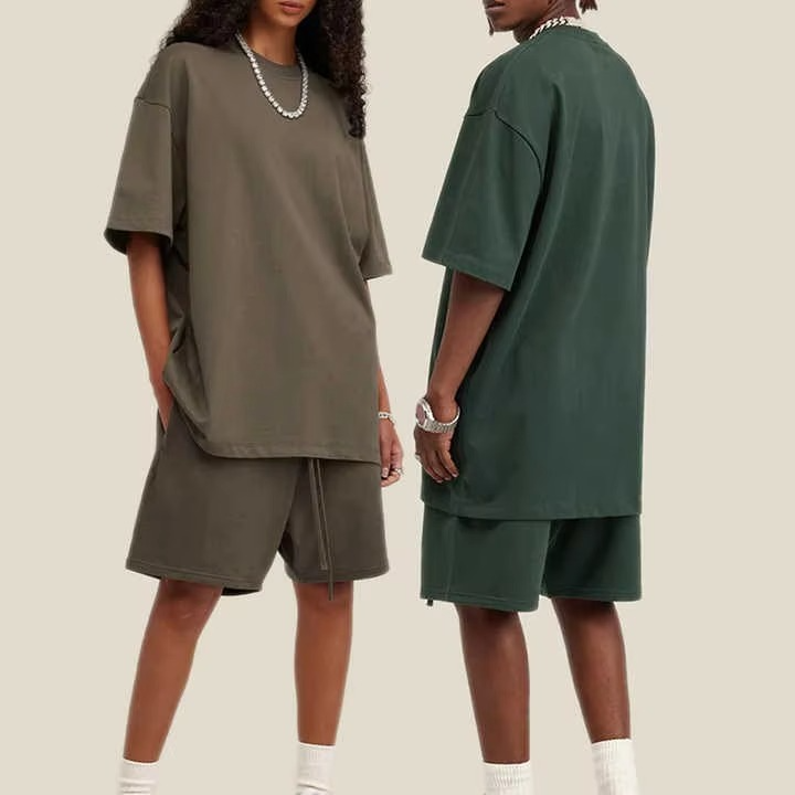 ชุดลำลองวินเทจไซส์ใหญ่สำหรับผู้ชาย เสื้อยืดแขนสั้นถักนิตติ้งผ้าโพลีเอสเตอร์/คอตตอนรักษ์โลก กางเกงขาสั้นสีพื้นสำหรับฤดูร้อน